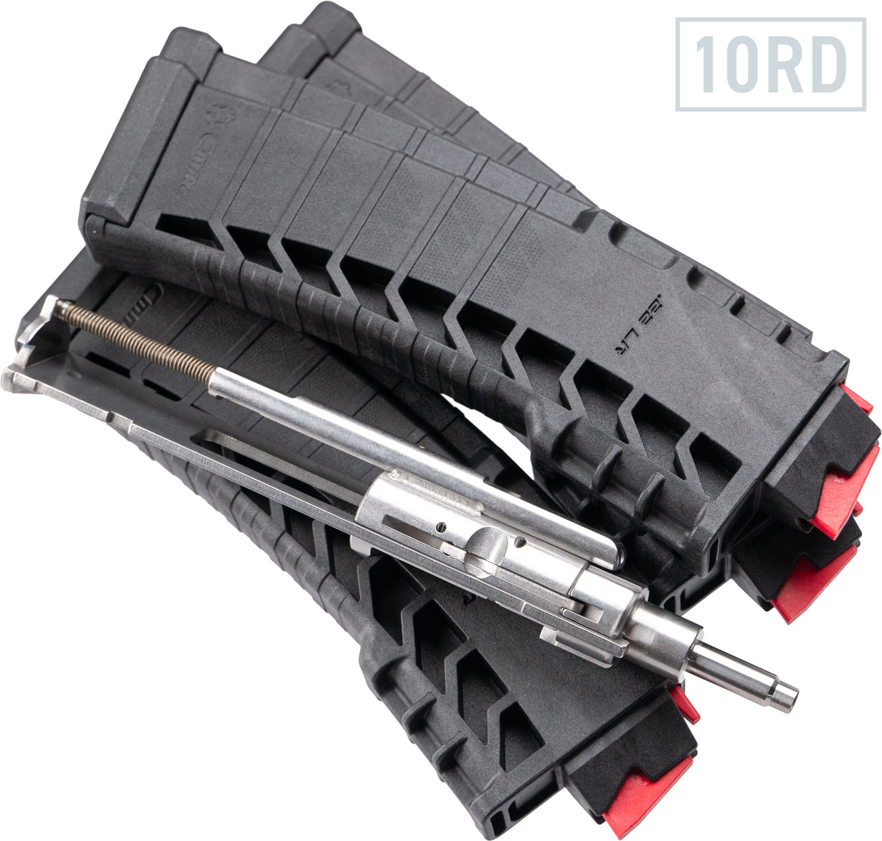 Easily convert your CMMG 5.7x28mm Upper Receiver Group into a .22LR in seconds! The new Mk57 .22LR Conversion Kit is simple to use. Just remove the existing CMMG bolt carrier group from your 5.7×28 upper and replace it with the drop-in conversion. Pair the upper with any Mil-Spec AR15/Mk4 lower receiver and then use the included magazine to safely shoot .22LR. It’s a great way to get in more trigger time while saving money on ammo. This conversion kit is designed for use with all CMMG Mk57 5.7x28mm upper receiver groups and bolt/barrel combinations when paired with an AR15 Lower.