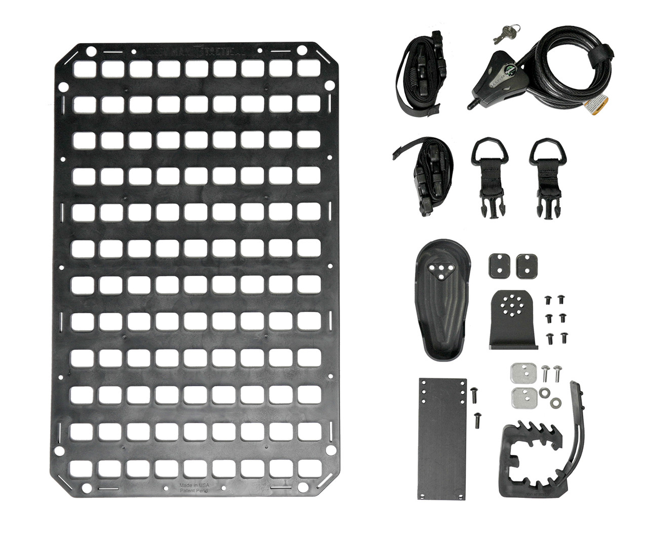 This seat back rifle rack includes Grey Man Tactical™'s leading rifle rack updated to include the anodized black buttstock cup and 6" extension to allow the buttstock of the weapon to drop down near the floor board. It also includes the popular Master Lock™ Python cable lock to pass through your weapon when needed for security, making this a great choice for your safe weapon transportation needs.