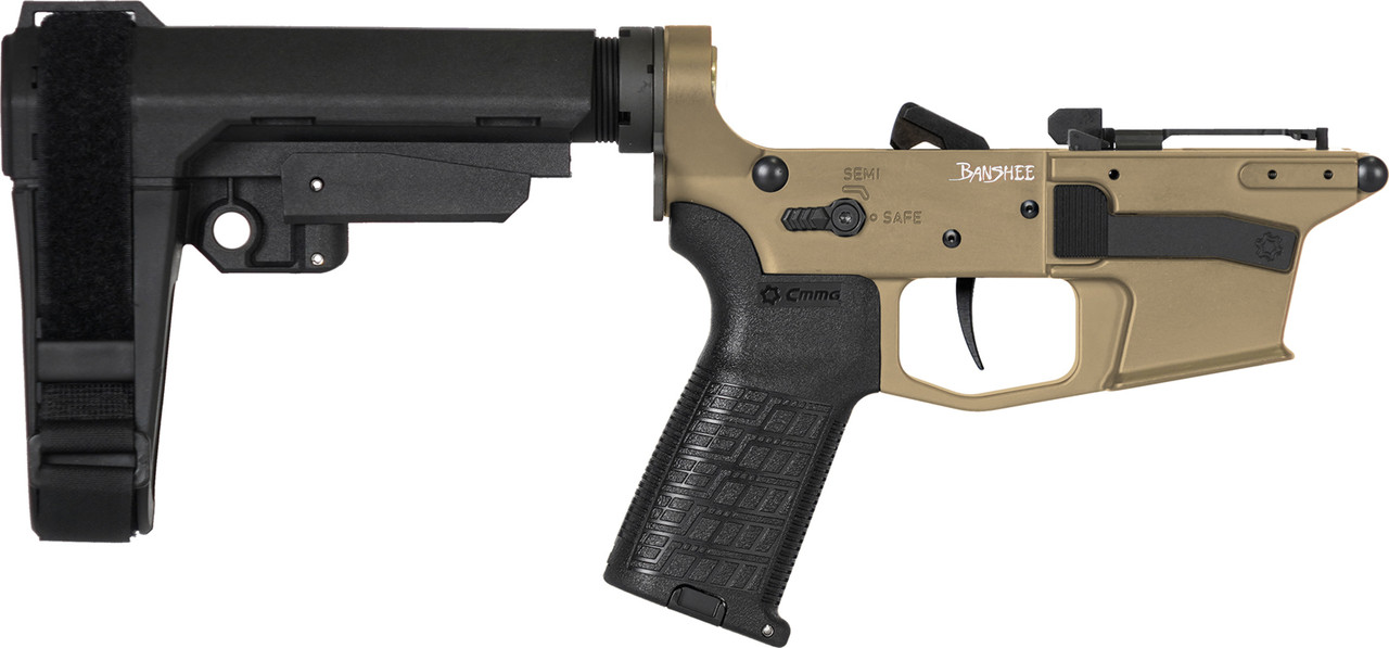 Whether you’re looking to build an AR pistol in 9mm or .40 S&W, the BANSHEE™ MkGs® pistol lower group is the perfect place to start. Designed to accept Glock-pattern magazines this MkGs lower makes caliber swaps a snap. Simply match your MkGs lower with 9mm Glock-pattern mags and a CMMG® 9mm Radial Delayed Blowback™ upper, or this same lower with .40 S&W Glock-pattern mags and a .40 S&W MkGs Radial Delayed Blowback upper. BANSHEE MkGs lower groups are available in seven Cerakote finishes and come outfitted with a variety of meticulously crafted CMMG parts and accessories, including: