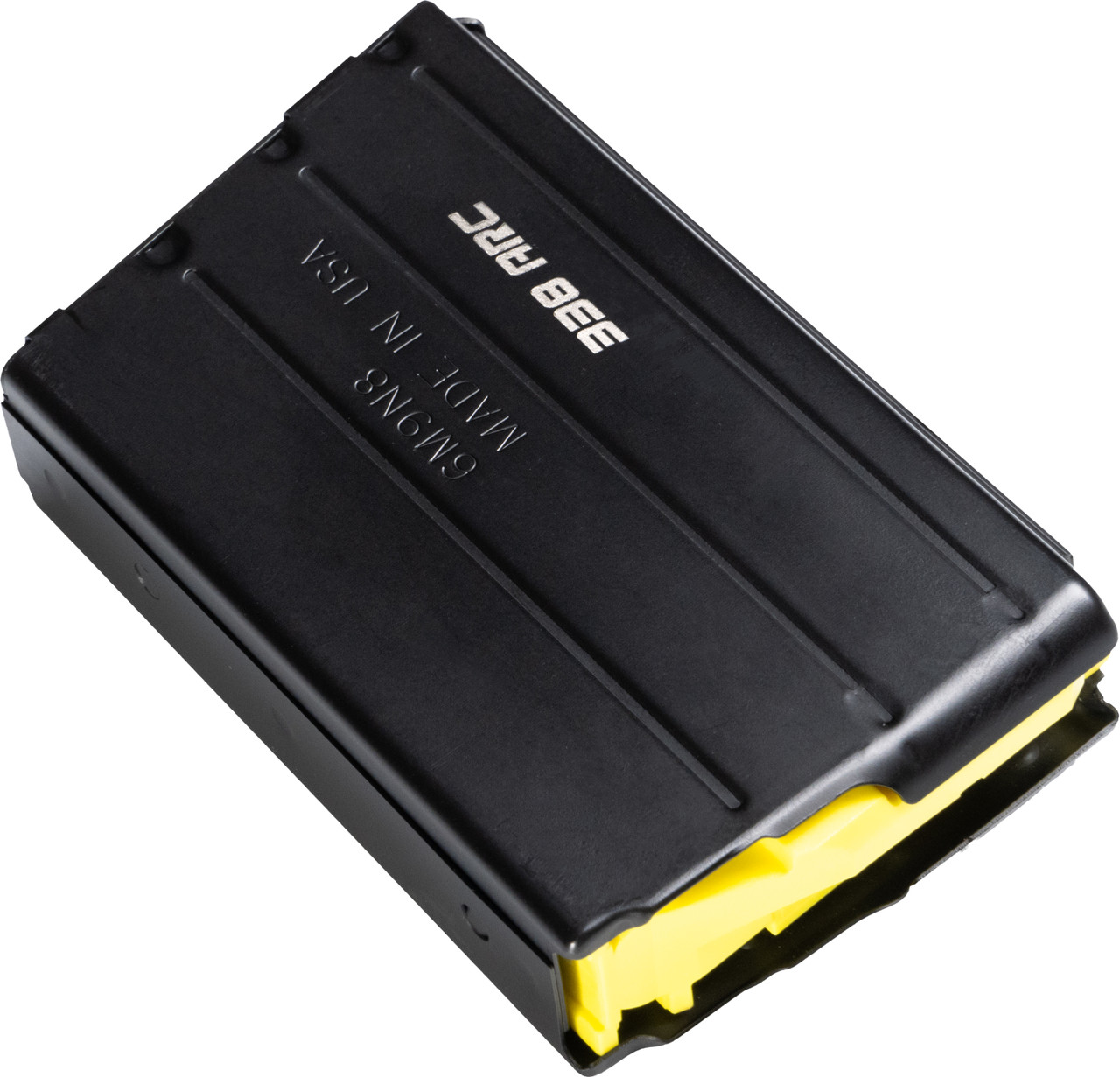 USA-made 10-round magazine for AR-15 platforms. Features high-visibility yellow anti-tilt follower and durable construction. Compatible with .338 ARC. State-compliant capacity and manufacturer warranty included.