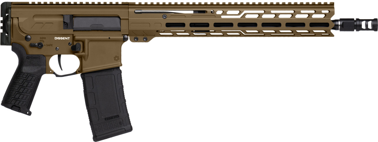 Shooting in close quarters or mid-range distances? The 14.5" DISSENT® Pistol in 300 BLK has enough barrel to extract the full performance of 300 BLK without the extra unnecessary length. Want to add a folding stock to this? No problem, the ZEROED SVD Brake pinned and welded to the 14.5" barrel brings the legal length up to 16.1" so you don't have to worry about SBRing anything.