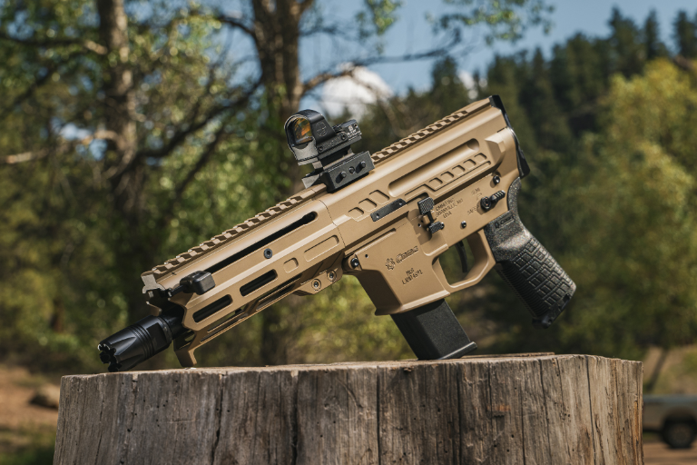 Available in a variety of Cerakote finish options; the rear of the DISSENT pistol comes with a Picatinny rear end plate ready to accept accessories* like sling mounts or braces. A forward non-reciprocating charging handle allows for quick and easy manipulation without coming off target and the M-LOK handguard with top picatinny rail provides ample mounting space for whatever accessories you please.