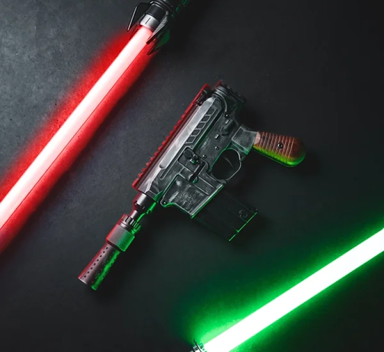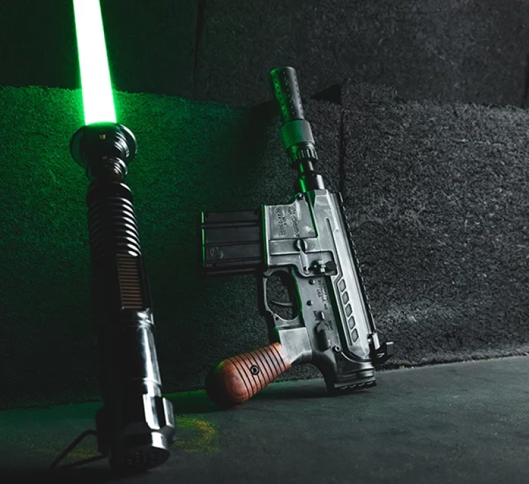 To put the cherry on top, the muzzle device may look like a regular DL44 flash hider but don't be deceived, this is the new DL44 suppressor. The DL44 suppressor uses the same internal components as our ZEROED 22K suppressor with a unique outer tube, making this both the coolest and quietest Blaster you'll ever get your hands on.