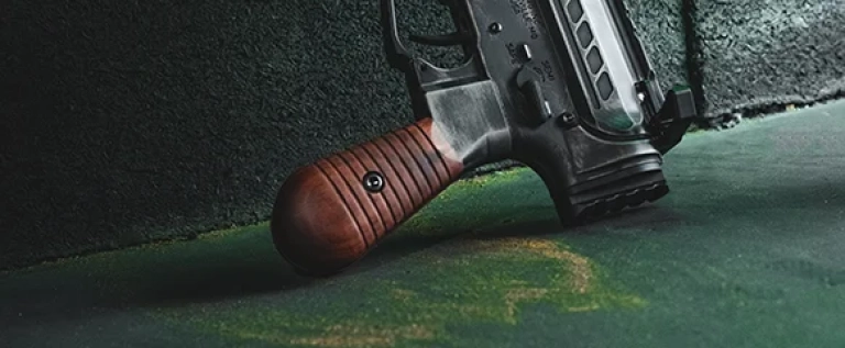 Get a solid grip on that blaster by your side. Grip frames are machined from aluminum while the hand finished wooden grip panels display the beautiful walnut grain pattern with a matte UV-cured finish.