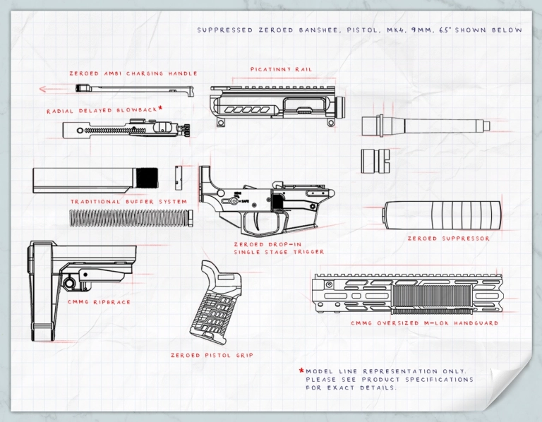 ZEROED Controls: All ZEROED BANSHEEs feature our ZEROED premium controls/parts like ambi charging handle, single-stage drop in trigger, 60/90 ambi safety selector, and pistol grip.