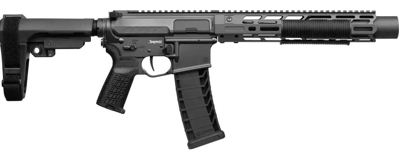 Equipped with a 6.5” barrel, the included ZEROED 36 suppressor tucks neatly inside the oversized, dad bod-ish 11” M-LOK handguard.