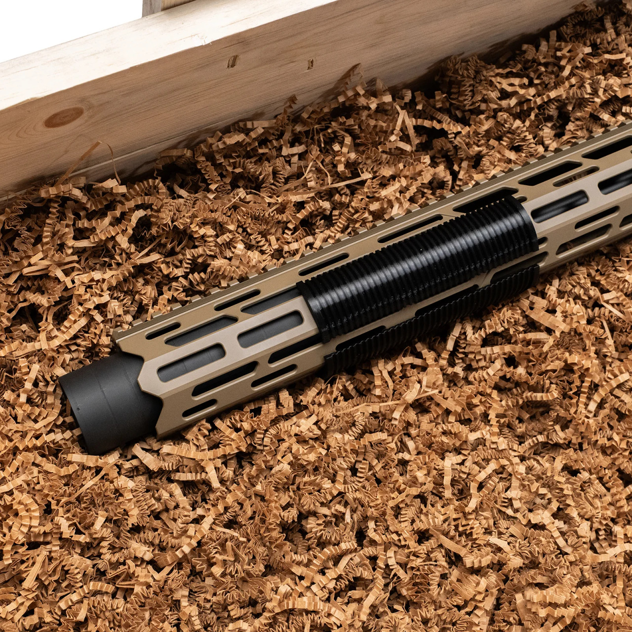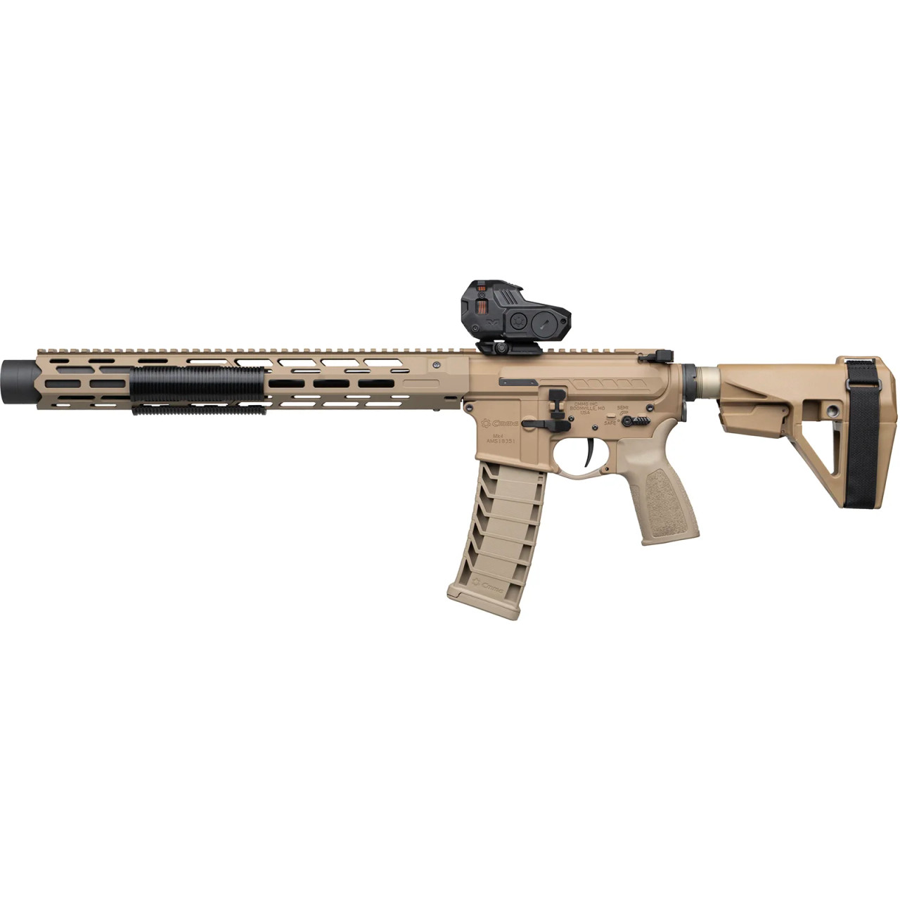 Matching the cerakote style and clear anodized buffer tube is the FDE SBA5 brace from SB Tactical.