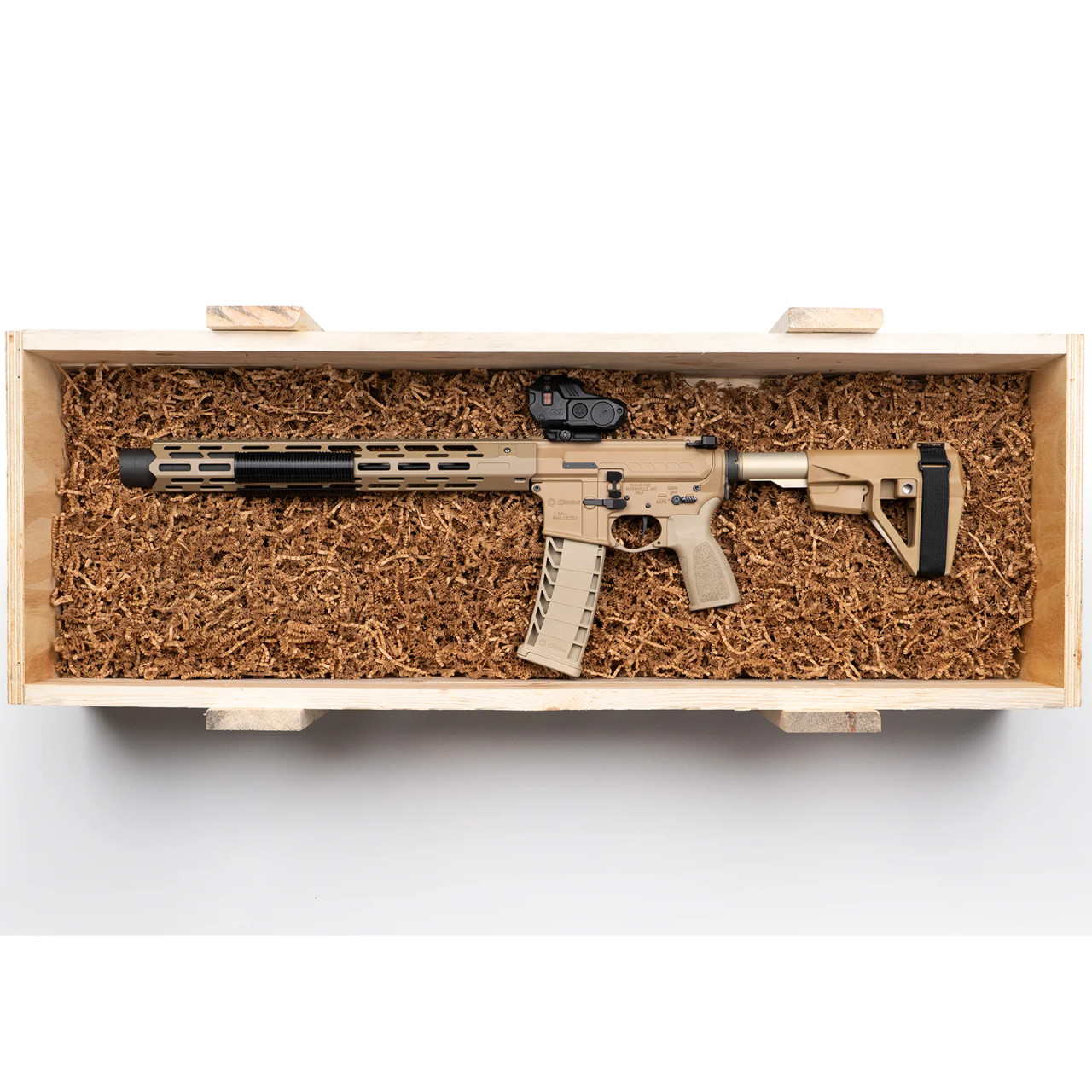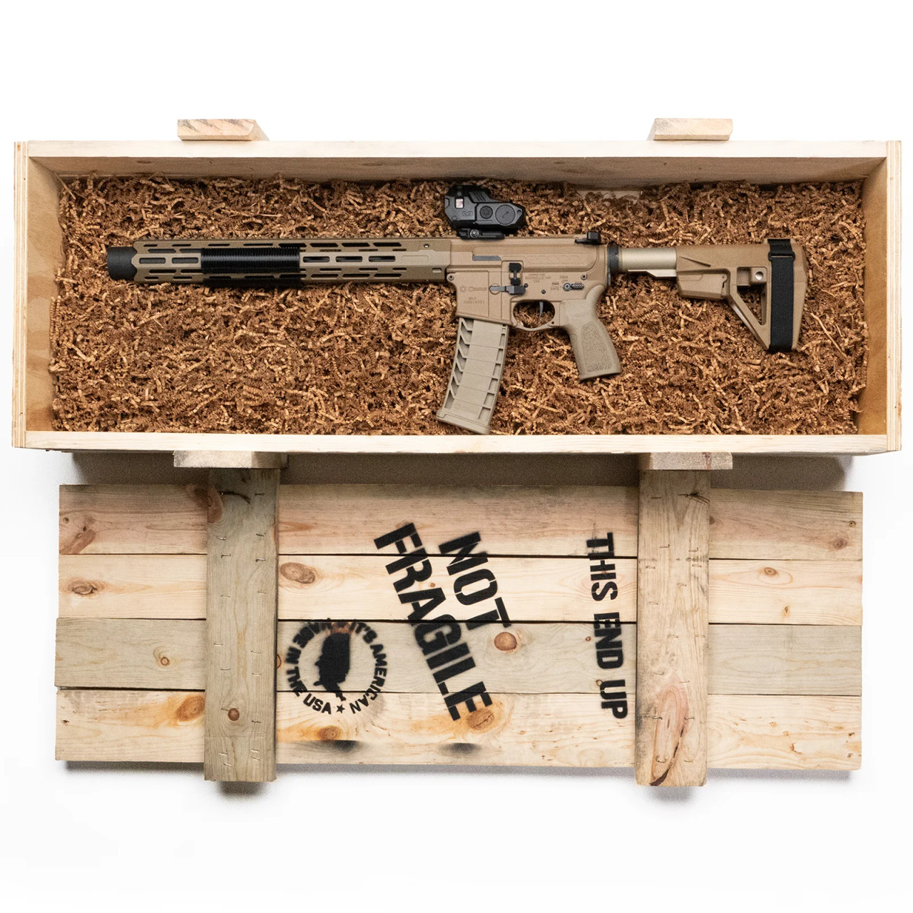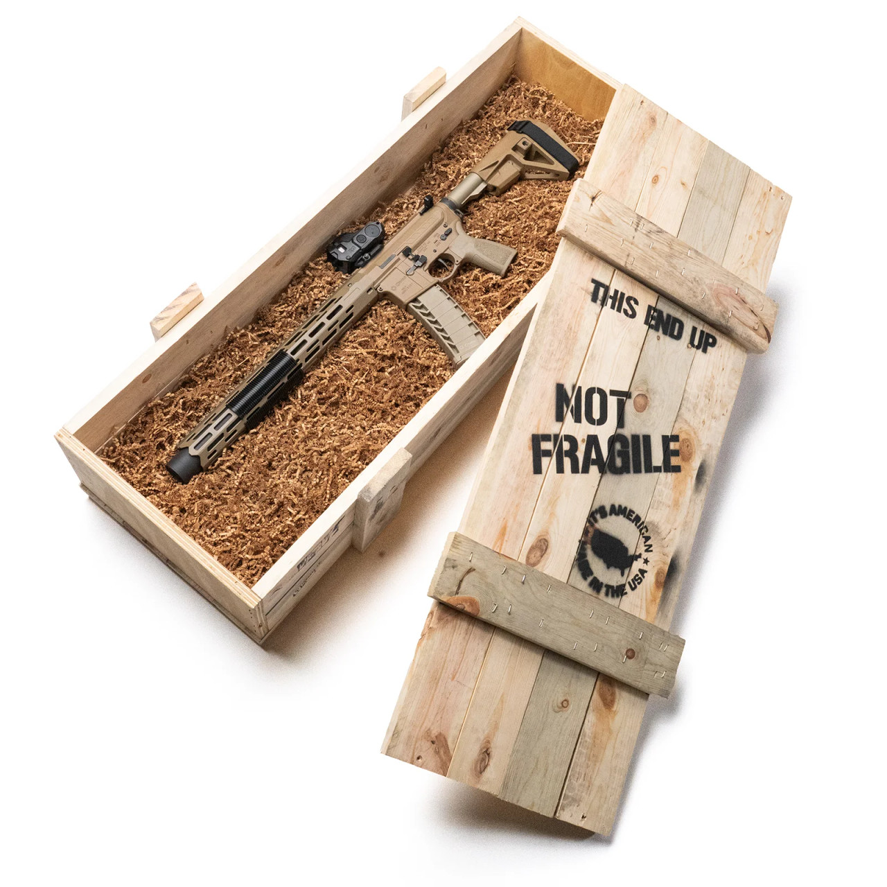Speaking of the box, all these wonderful treausures you might consider Fra-Gee-Lay (fragile), come in an appropriately labeled wooden crate to make sure this major award arrives to your FFL safe and sound. Inside the crate, the firearm will be shipped inside a custom CMMG soft case.