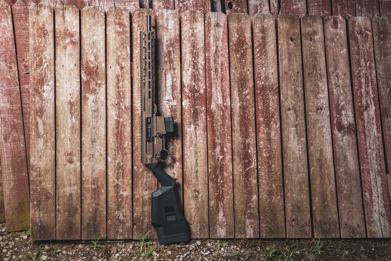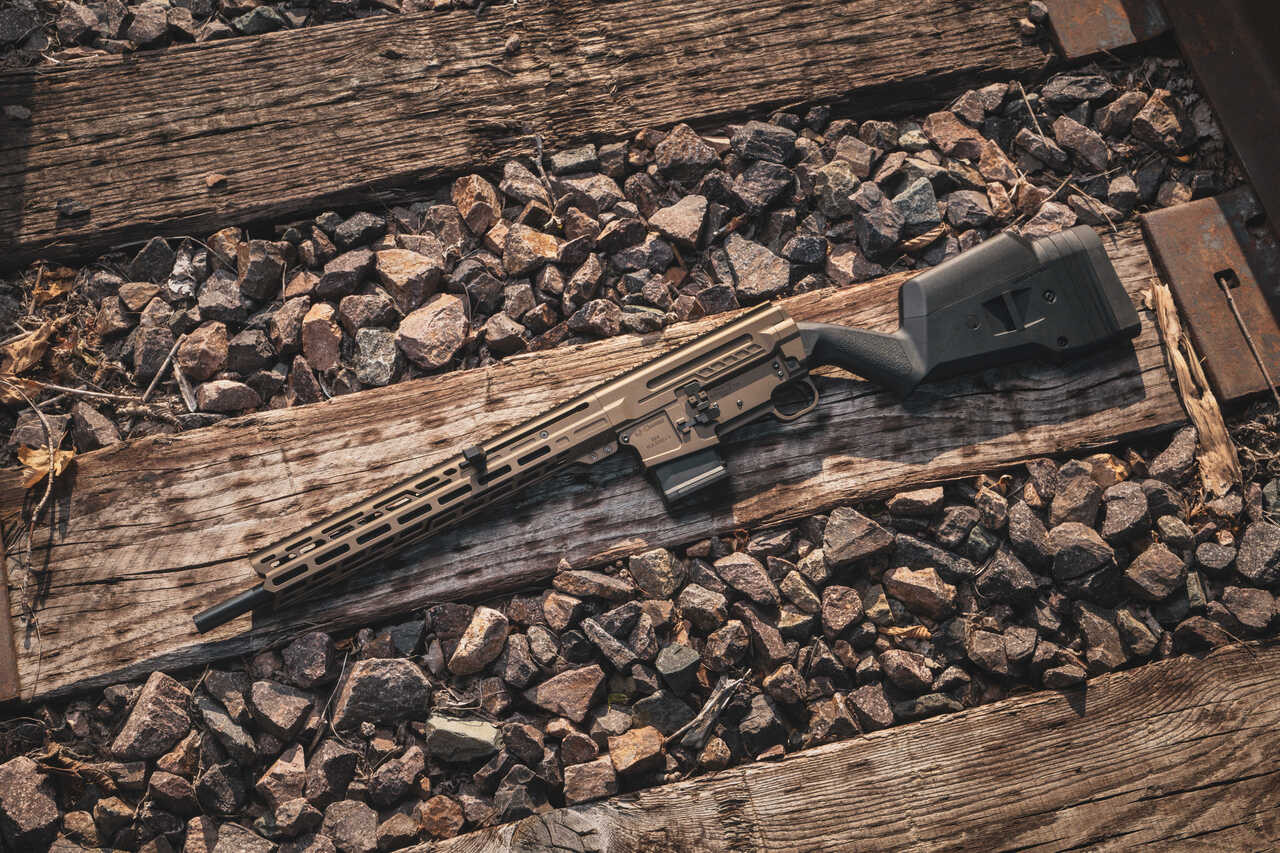 The 16.1" firearm ships with (2) 10rd magazines, Remington 870 stock compatible, cross-bolt safety, forward non-reciprocating side charger, a proprietary ZEROED single stage trigger and your choice of (7) colors.