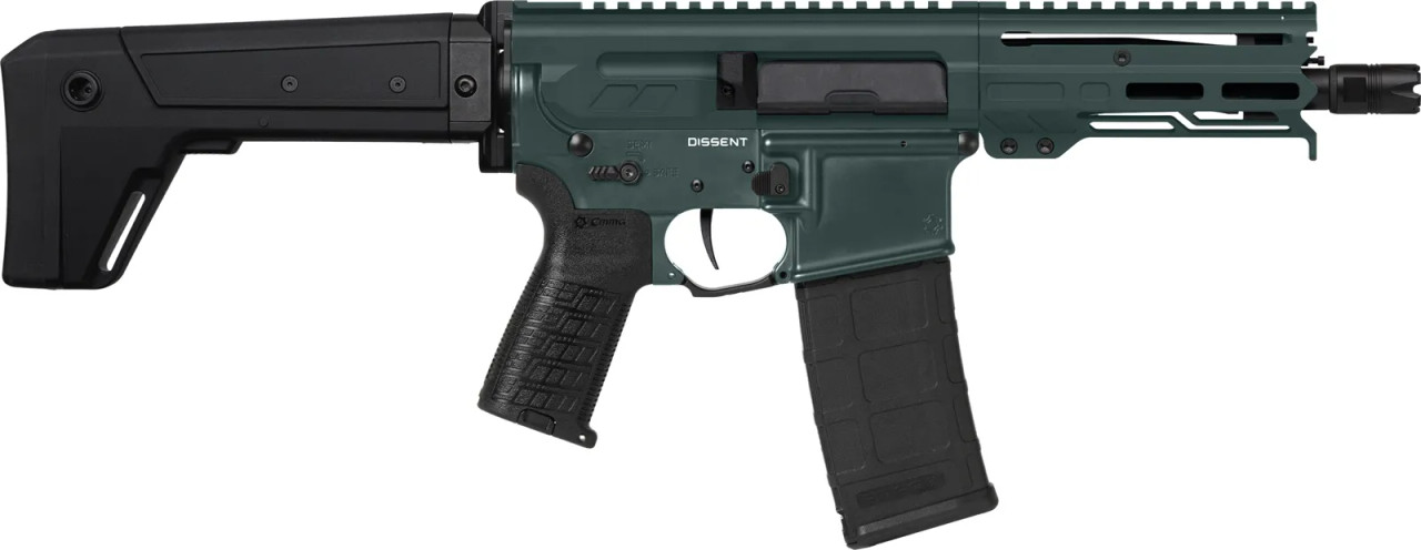 Available in a variety of custom Cerakote finish options; the rear of the DISSENT SBR features the DISSENT side folding stock with adjustable length of pull and adjustable cheek riser. A forward non-reciprocating charging handle allows for quick and easy manipulation without coming off target and the M-LOK handguard with top picatinny rail provides ample mounting space for whatever accessories you please.