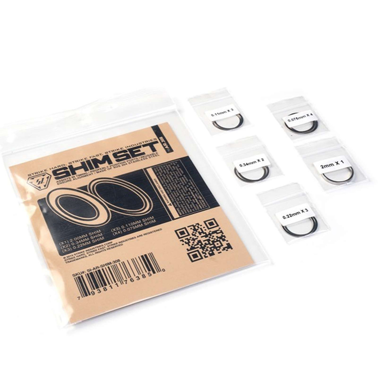The Strike Industries AR Shim Set for 1/2" muzzle threads assists in timing and alignment of your muzzle devices for a peace of mind, dependable installation. Crush washers are usually a one-time use washer designed to deform and do not guarantee alignment. Shim washers are flat, consistent, and should be used whenever bore alignment is critical in applications such as silencer mounts or to ensure your muzzle device ports are correctly positioned. Available in both 1/2"-28 TPI (.223/5.56) or 5/8"-24 TPI (.308) sizes, the Strike Industries AR Shim Set for .223/5.56 or .308 are solid one-piece shims made in various precision thicknesses for just about any application.