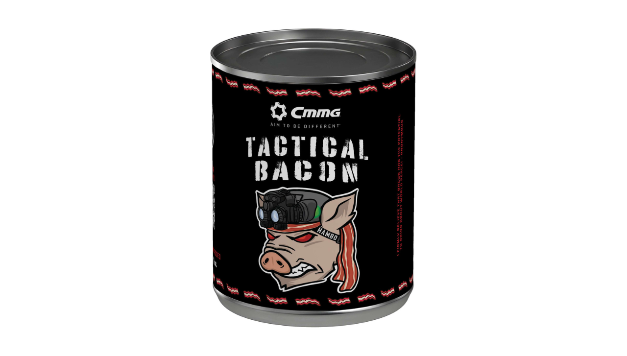 Be hungry no more! CMMG®Tactical Bacon is back to complete any meal (or be the entire meal, you do you boo). Packed in every can is 12oz of pre-cooked and ready to eat bacon or approximately 60-70 slices of hog heaven. Now you never have to go without the best part of the pork or worrying about cooking.