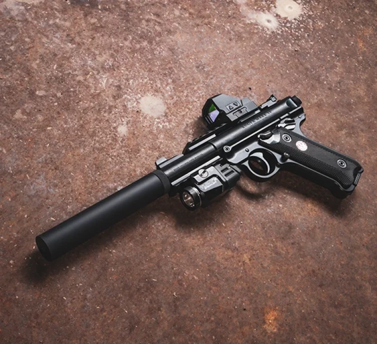 Many .22 LR firearms come with a 1/2"-28 threaded muzzle, or adapter, allowing for easy attachment of suppressors... Like a ZEROED 22 perhaps?